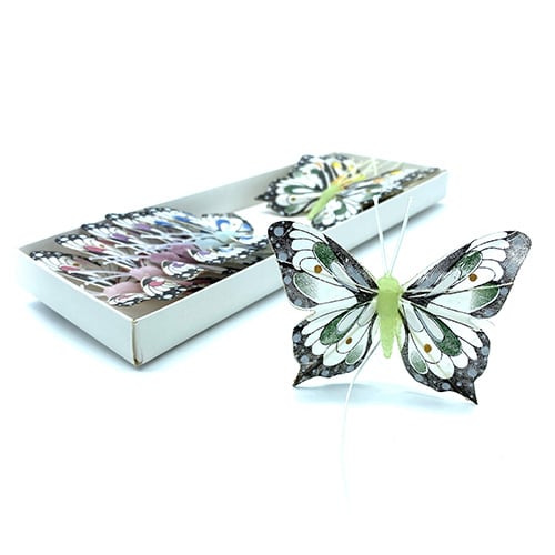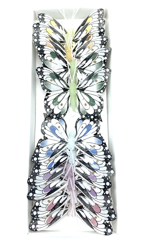 Paquete de 12 mariposas (7,5X6cm) en varios colores.