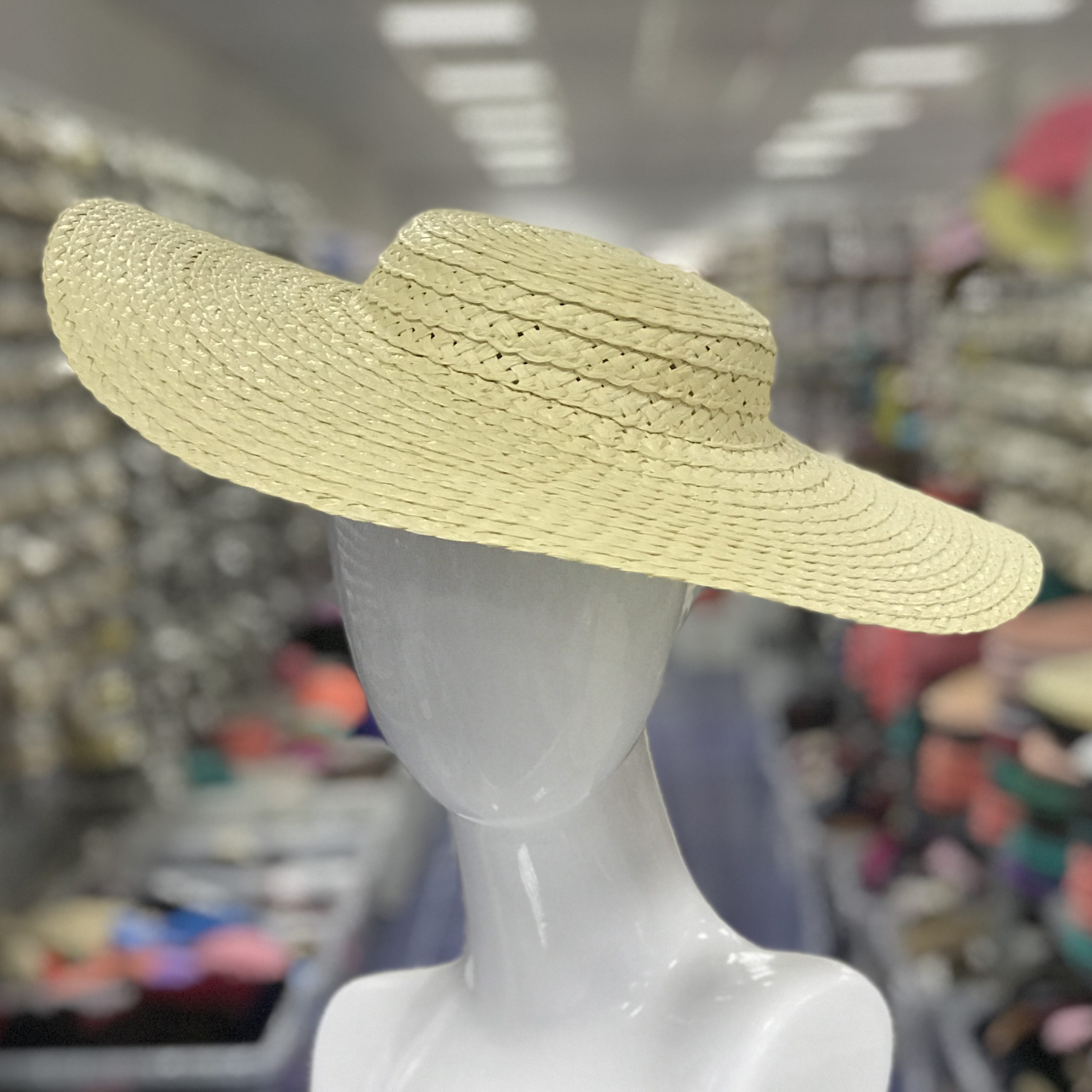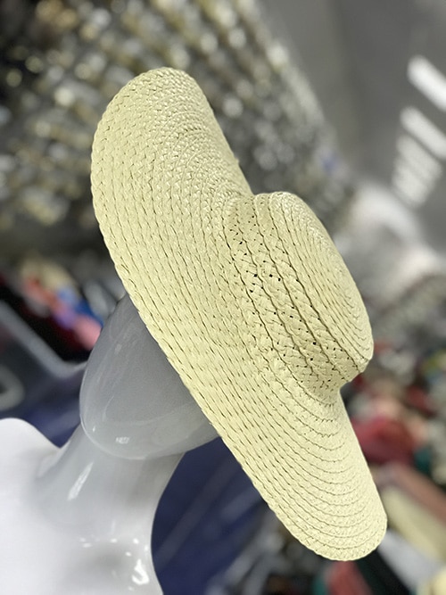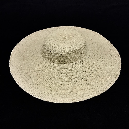Pamela de fibra natural trenzada con un diámetro de 40 cms y una altura de copa de 5 cms aprox. Necesita diadema para su sujeción.
