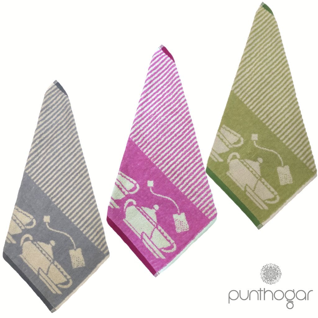 Trapos de cocina estampados alta calidad marca Trovador en rizo de algodón 100% en 3 colores diferentes para una cocina actual y moderna.