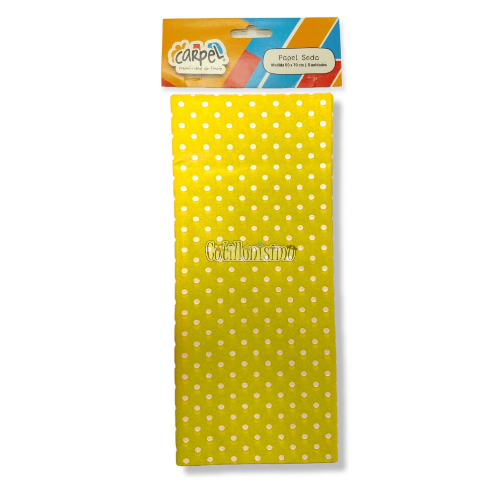Papel Seda Color Amarillo Estampado Lunar Blancos x5 Unidades