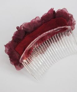 R21/4143 -Bellísima peineta de fiesta, perfecta para colocarla en el cabello. Está hecha a mano y cuenta con preciosas flores de tela en tono GRANATE.