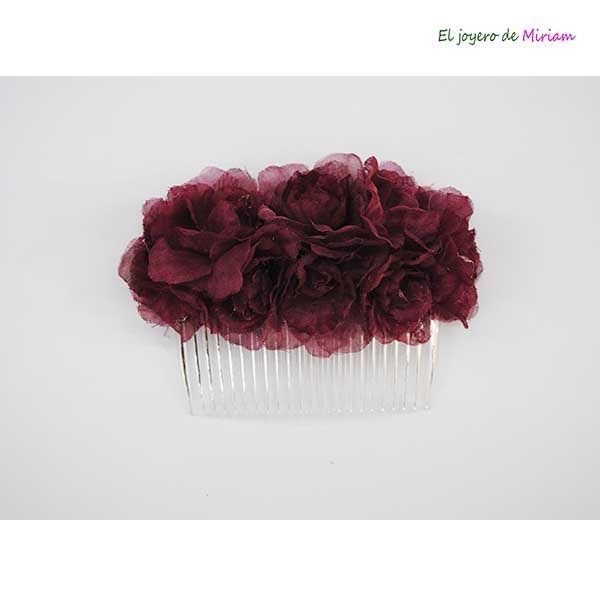 Peineta de flores granates