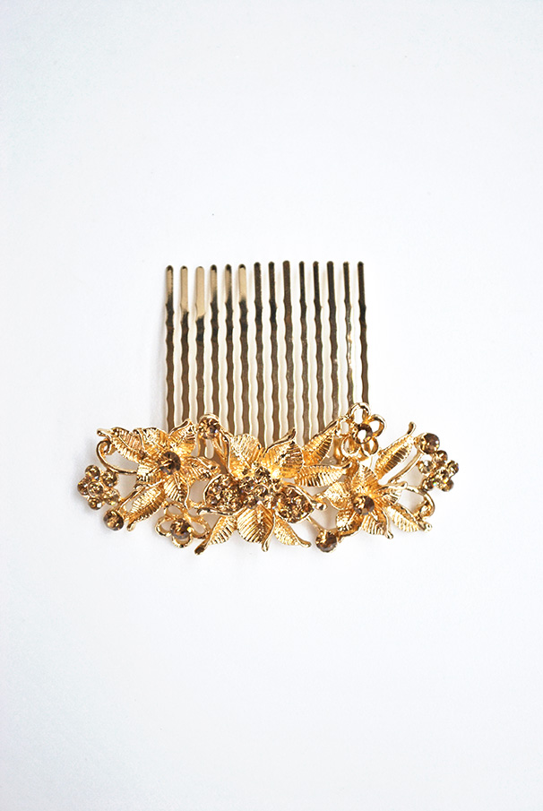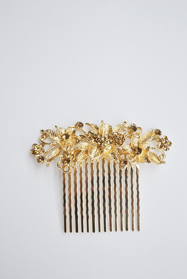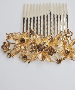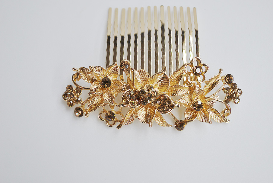 Peineta dorada flores cristal