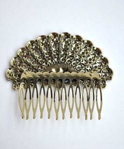 R03/5026 – Preciosa peineta de fiesta o tocado oro envejecido. Se trata de una peineta diseñada en forma de abanico y, fabricada en metal ligero dorado. Ideal para completar tu look de invitada. Ideal para recogidos y semirecogidos.