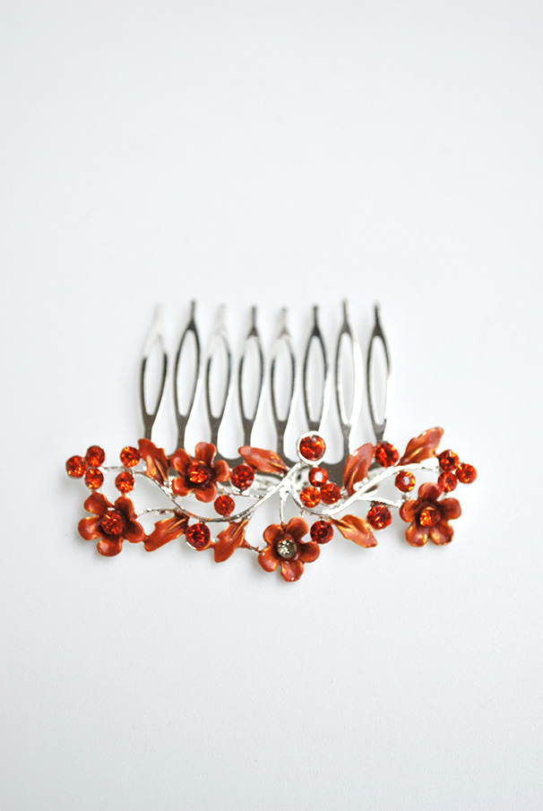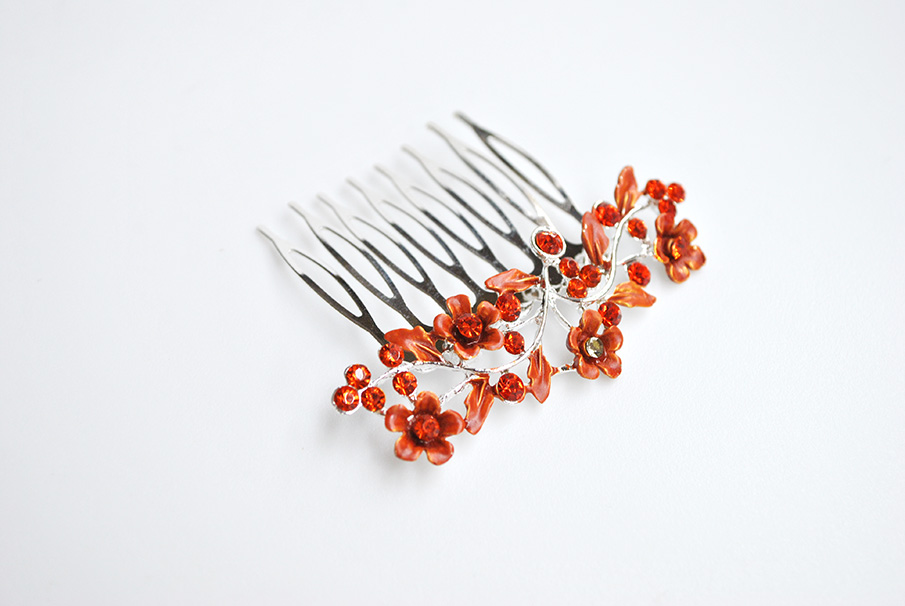 Peineta naranja de flores