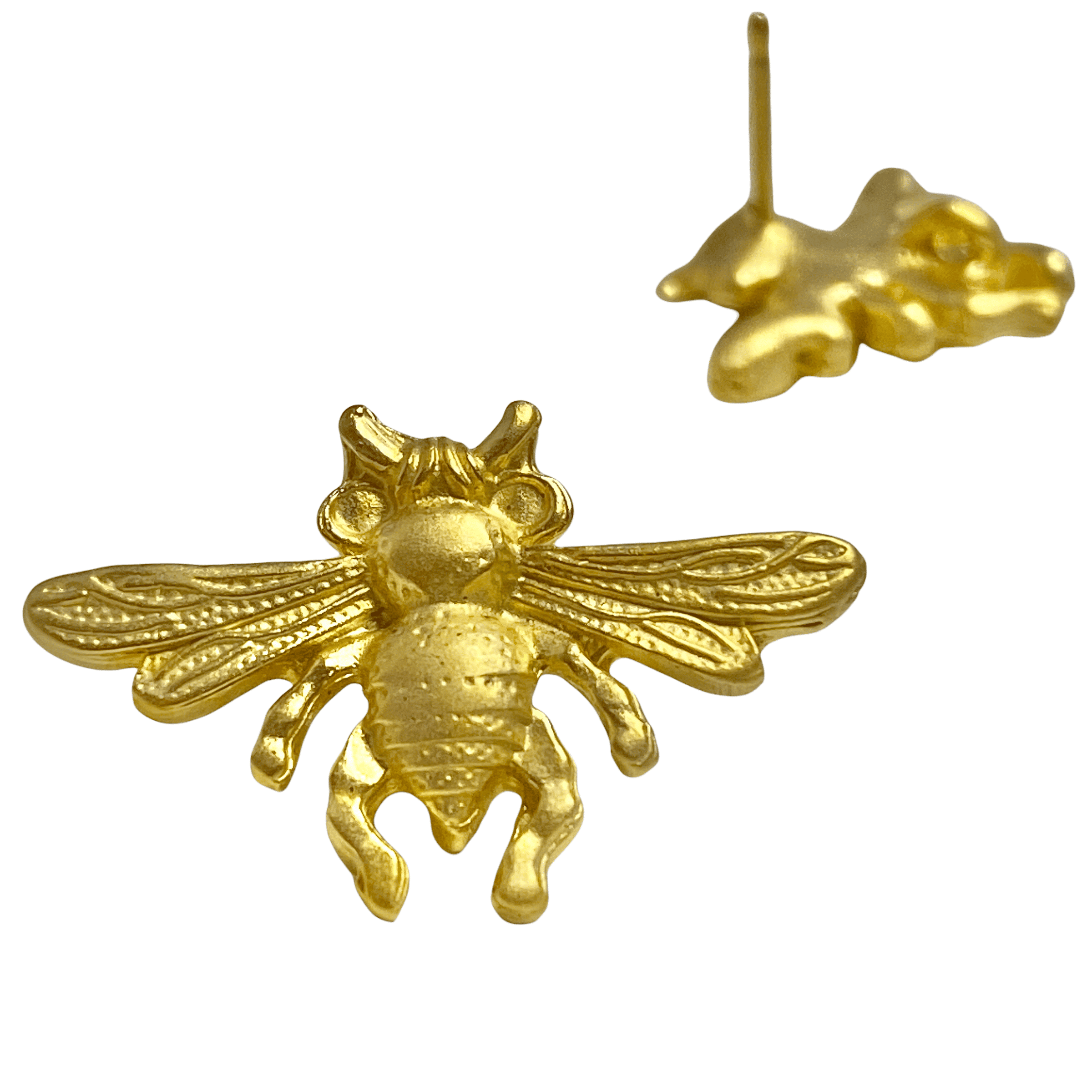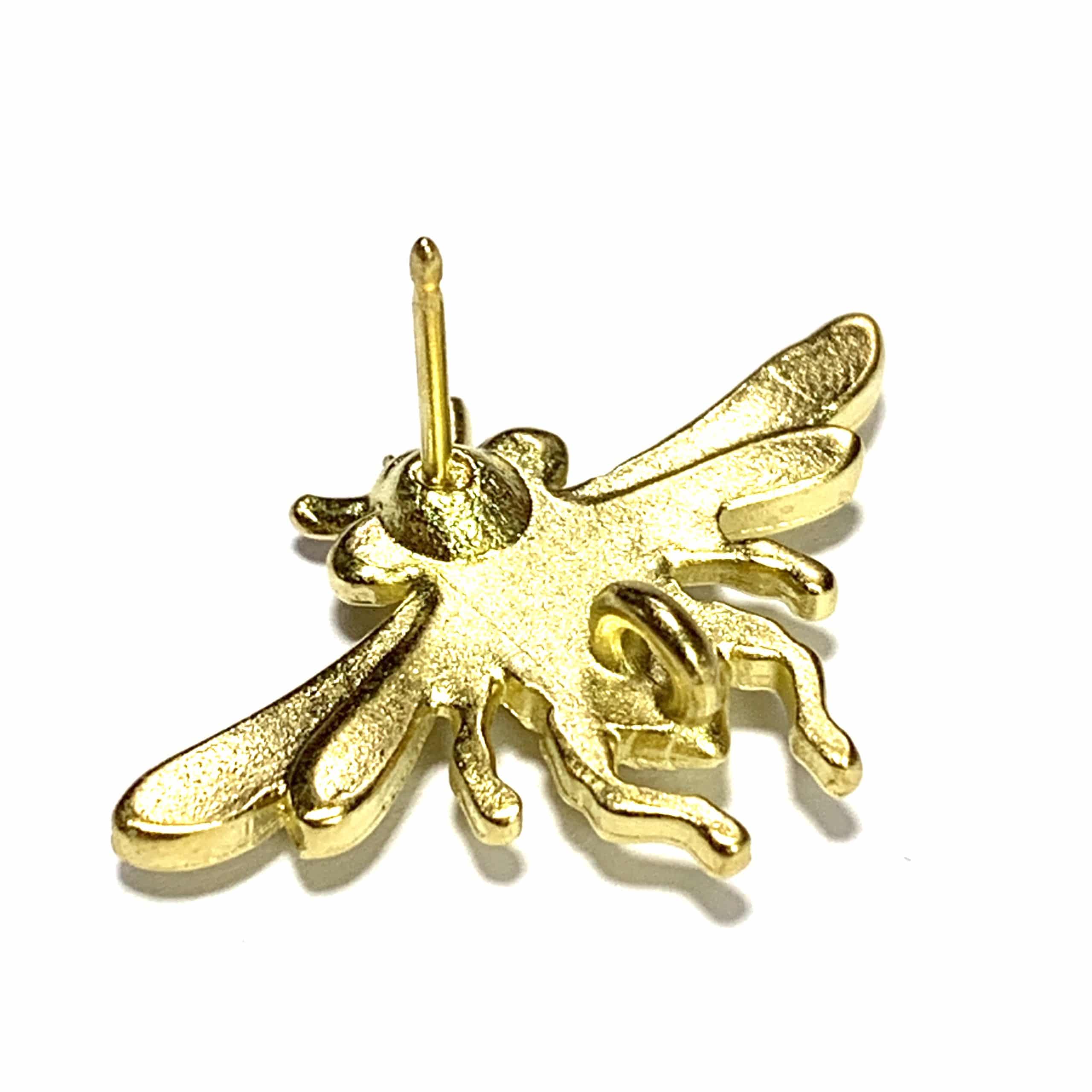 Pendiente de tornillo de zamak con baño de oro con forma de mosca de 18×28 mms.