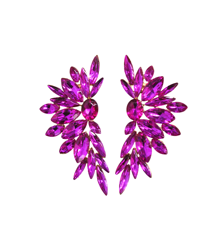 REF: 24/5747 – Elegantes y bonitos pendientes de fiesta bugamvillas. Se tratan de unos pendientes montados sobre bisutería dorada y diseñados en forma de flor y hojas, decorados con cristales. Quedan ajustados a la oreja y son muy favorecedores y cómodos de llevar.
