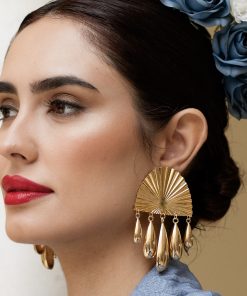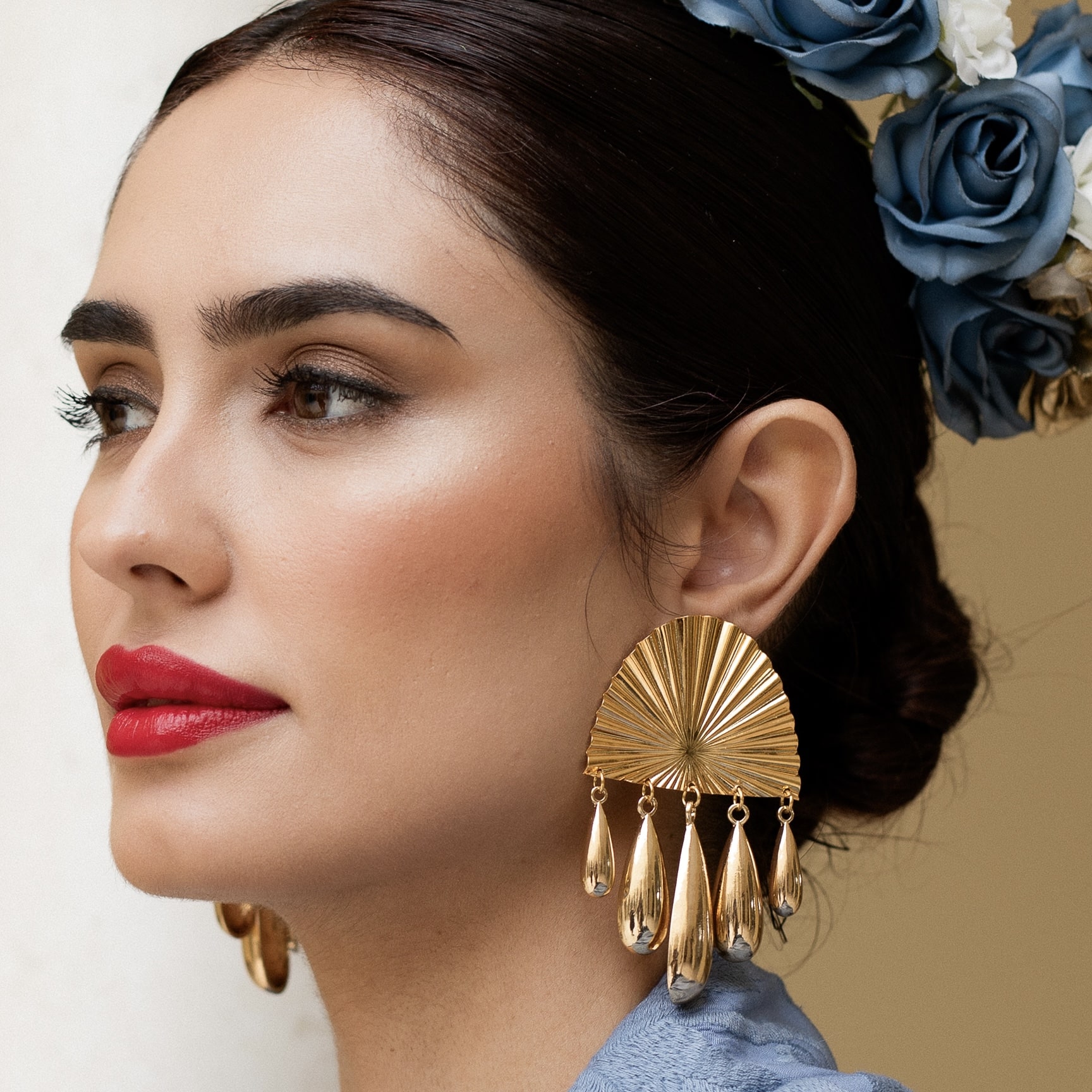Cuando eliges unos pendientes de flamenca, no solo buscas algo bonito: quieres una pieza que hable por ti. Los Pendientes Denis no son un accesorio cualquiera. Son una declaración. Están elaborados con piezas de latón chapadas en oro con un espesor de 0,3 micras y terminados con lágrimas doradas que aportan dinamismo y movimiento.