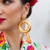 Descubre los pendientes de flamenca dorados, una obra artesanal creada en nuestro taller de Sevilla. Cada pendiente ha sido diseñado para aportar un toque único a tu look de flamenca o fiesta.Están hechos a mano con tachas doradas y perlas irregulares. Tienen un estilo natural y delicados abalorios chapados en oro. Esto asegura una garantía de comprar pendientes de alta calidad fabricados en la cuna de la moda flamenca, Sevilla.