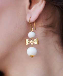 Pendientes de diario, fiestas o flamenca elaborados con abalorios de hueso natural, lazo metálico de latón chapado en oro y fornitura de pendiente de acero inoxidable.