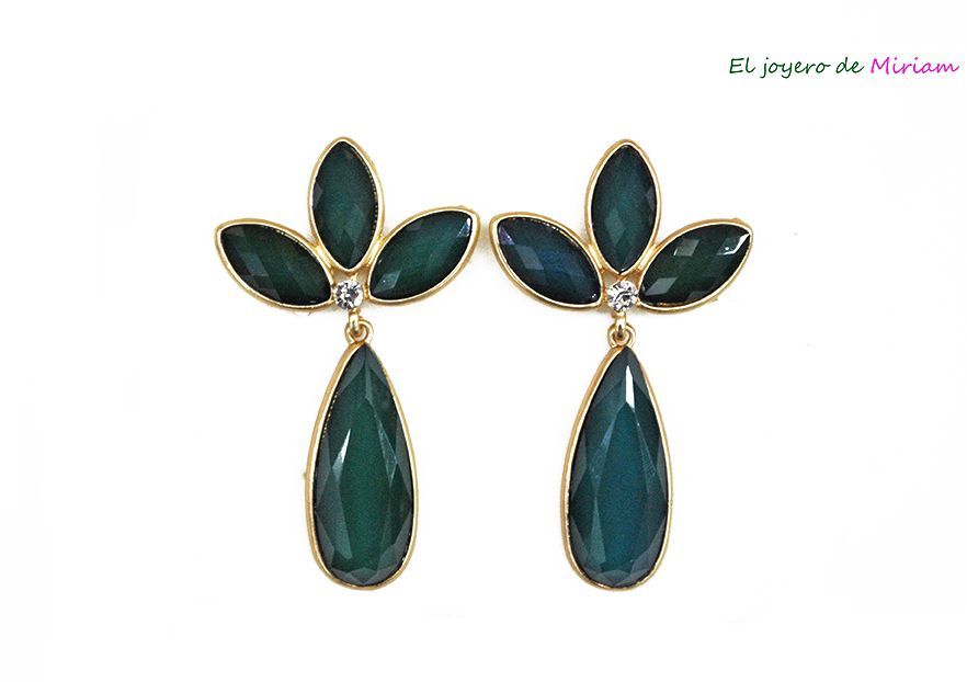 Pendientes de fiesta AZUL PETRÓLEO , elegantes y atemporales que te irán con todo, gran vistosidad el de este diseño, están montados en bisutería dorada y podrás lucirlos con tu vestido de fiesta o noche en bodas, bautizos, comuniones y otros eventos, pendiente versátil que será un estupendo fondo de armario ya que aporta color y luminosidad a tu rostro sin ser de gran tamaño.
