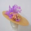 R024/5755 – Preciosos pendientes dorados tipo flamenca. Se tratan de unos pendientes montados sobre bisutería dorada y diseñados en forma de aro. Presentan flores combinadas en tonos malvas y mostaza con alguna que otra hoja verde. Constan de cierre a presión.