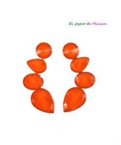 Originales y coquetos pendientes de mujer, montados sobre bisutería dorada. Se tratan de unos pendientes muy cómodos de llevar, decorados con aplicaciones metálicas en forma de hoja, pequeños aros dorados y piedras símil drusa en color granate.