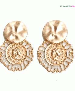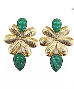 R21/4265 – Elegantes pendientes de fiesta diseñados en forma de hoja, en metal ligero dorado y con decoraciones de cristales en la parte central de color negro.