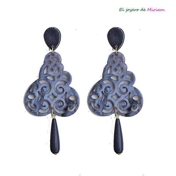R03/5165 – Bonitos y originales pendientes largos. Se tratan de unos pendientes violetas fabricados en resina esmaltada con ligeros y elegantes brillos. De estilo flamenca y muy cómodos de llevar ya que no pesan nada. Constan de cierre a presión.