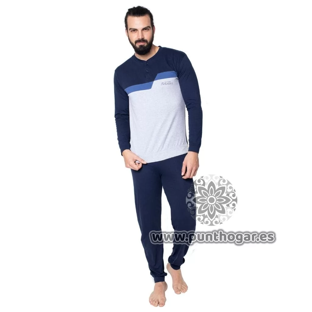 Pijama de hombre con chaqueta terminada en puños, así como el pantalón que se confecciona con cintura elástica.