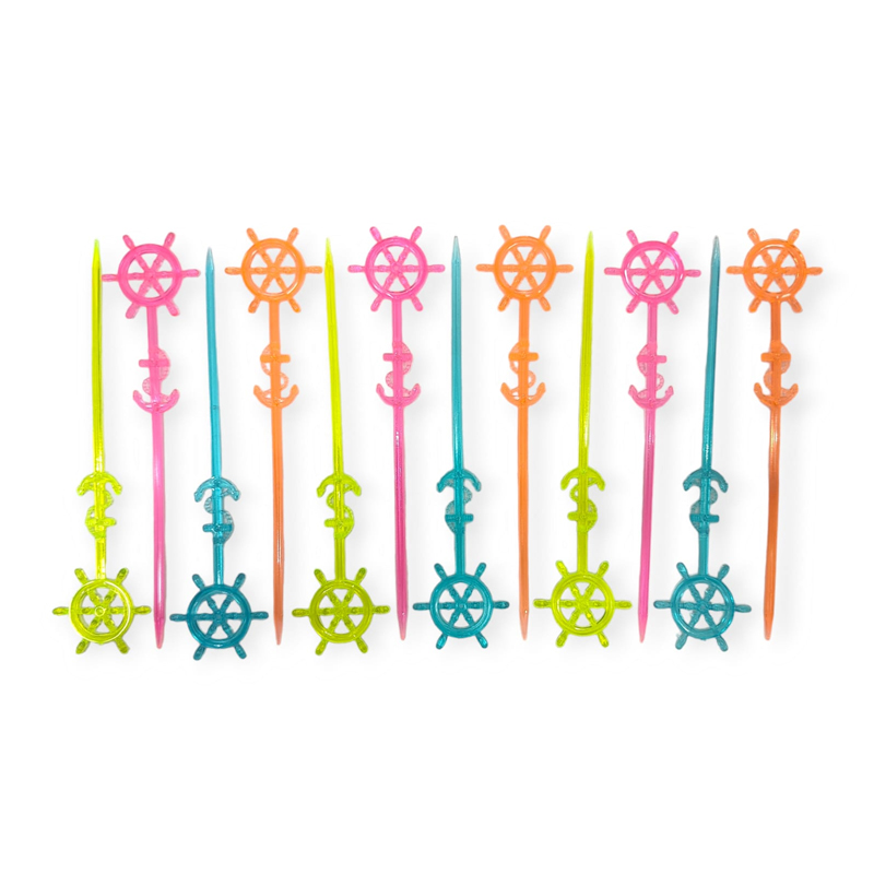 Revolvedor para Tragos – Pinche para Copetín Acrílico Timón – Barco – Ancla – x 12 Unidades Surtidas – Fluo