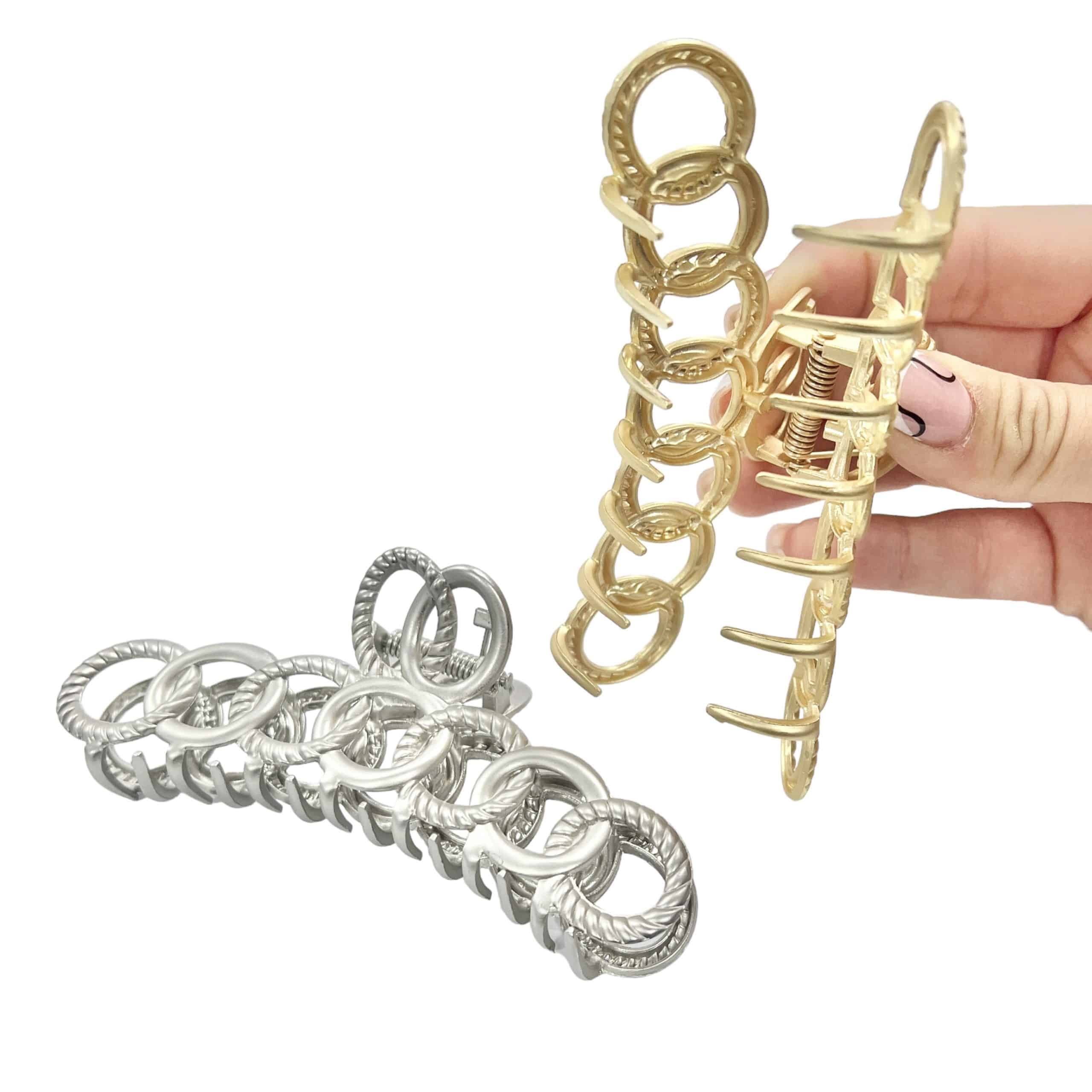 Pinza de pelo disponible en dorado y plateado con un tamaño de 11,5 cm.