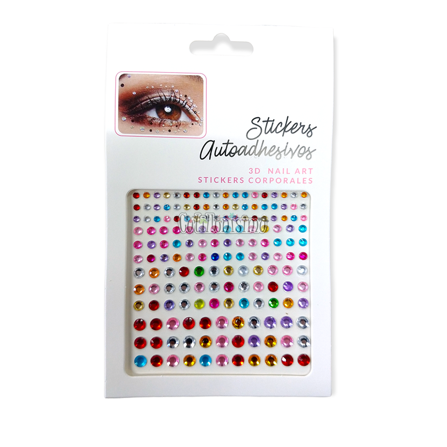 Plancha de Piedritas / Strass / Brillos Redondos colores Surtidos (Multicolor) Tamaño Chico Autoadhesivo