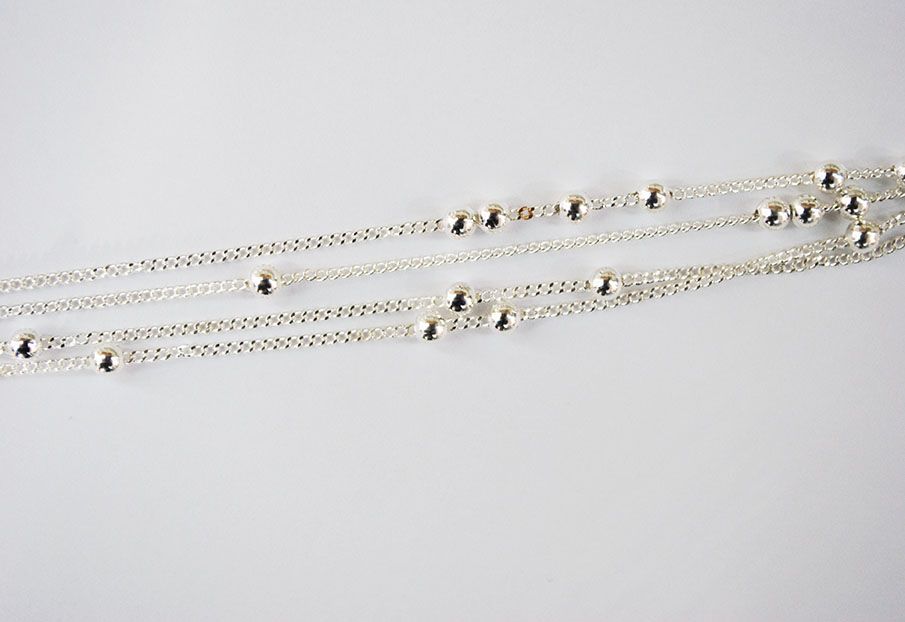 Bonita pulsera de varias cadenas plateadas fabricadas con baño de plata decorada con pequeñas bolitas