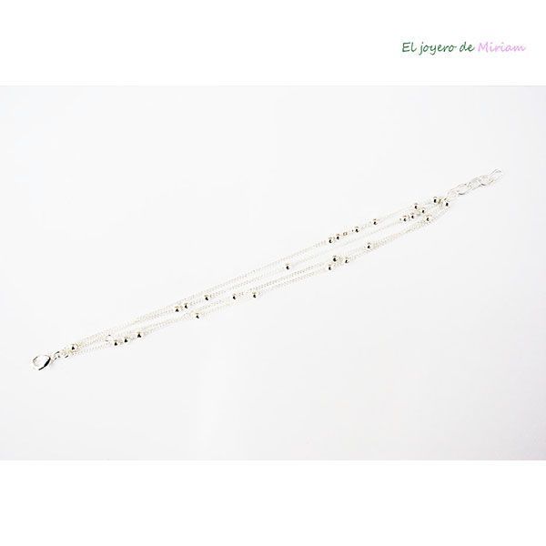 REF: 21/3707 -Bonita pulsera de varias cadenas plateadas fabricadas con baño de plata decorada con pequeñas bolitas