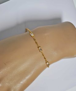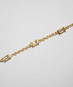 R03/4980 – Preciosa y elegante pulsera dorada de acero inoxidable. Se trata de una pulsera con cadena y decorada con cuatro pequeños cristales rectangulares.