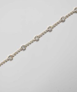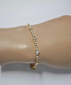 R03/4981 – Preciosa y elegante pulsera dorada de acero inoxidable. Se trata de una pulsera con cadena y decorada con pequeños cristales blancos redondos.