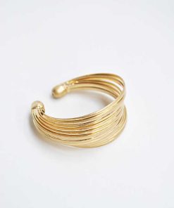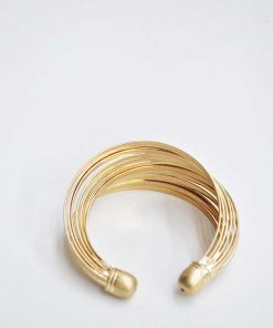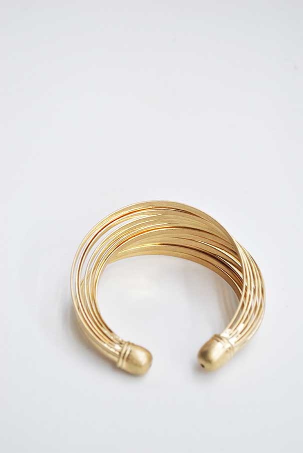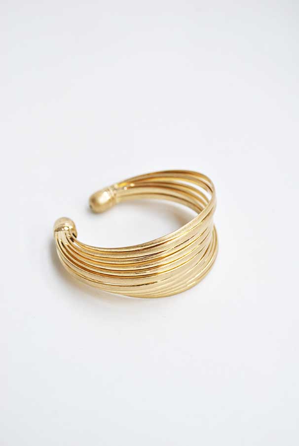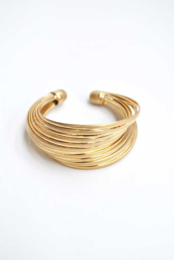 R03/5366 – Bonita pulsera dorada. Se trata de una pulsera o un brazalete fabricado en metal ligero dorado y diseñado con varias tiras.