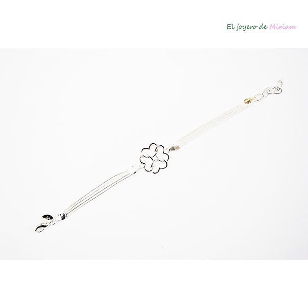 REF: 21/3707- Bonita pulsera de varias cadenas plateadas fabricada con baño de plata y decorada por cuatro corazones entrelazados formando una flor.