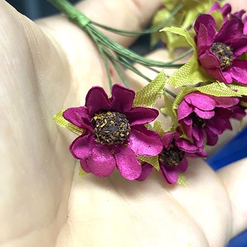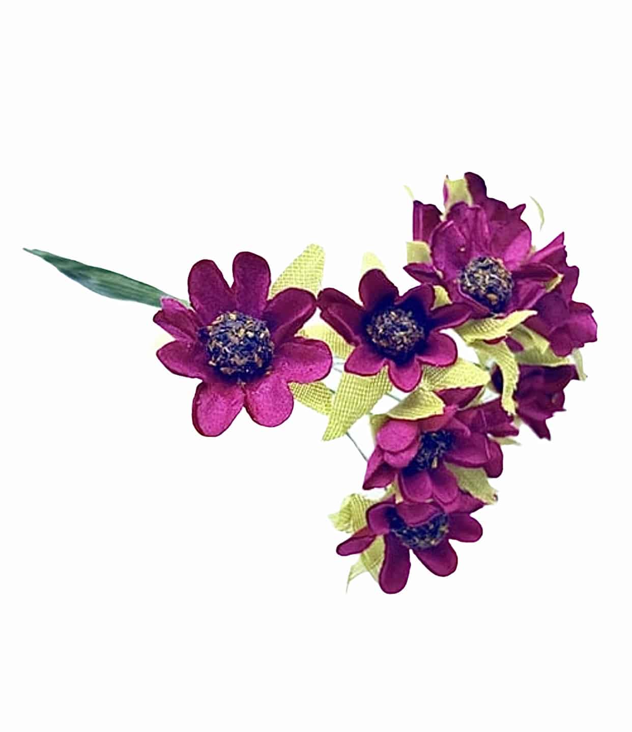 Ramillete de flores formado por doce florecitas de papel en color buganvilla con un diámetro de 2,5cm.
