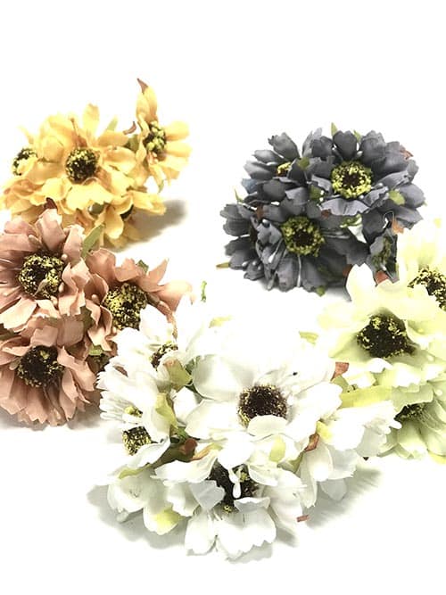 Ramillete formado por 6 margaritas. Las margaritas miden 40mm de diámetro.