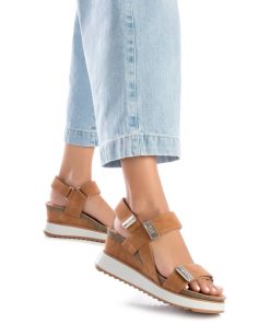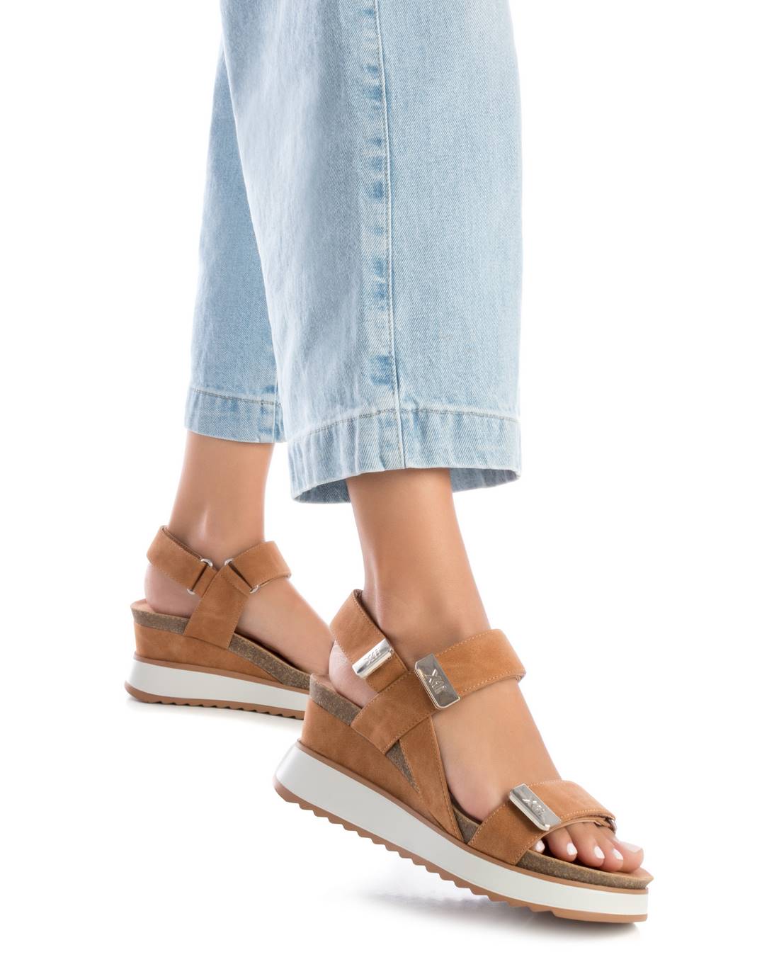 Sandalia de mujer con cuña, de la marca Xti. Fabricada en material que imita la piel, se convertirá en uno de tus esenciales de esta temporada. Detalles metalizados para un mejor acabado. Cierre mediante tira adherente. Planta bios. Cuña de 7 cm con suela de goma antideslizante. Este modelo ha obtenido el certificado vegano por la organización mundial PETA (Organización de los derechos de los animales).