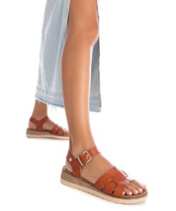 Sandalia de mujer, de la marca Xti. Fabricada en material que imita la piel. Parte trasera con pulsera de hebilla para sujetar al tobillo. Planta acolchada con plataforma de 4 cm de altura, efecto madera y suela canalada de goma antideslizante. Este modelo ha obtenido el certificado vegano por la organización mundial PETA (Organización de los derechos de los animales).