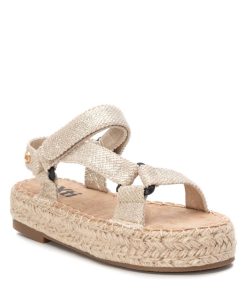 Sandalia de niña, de la marca Xti Kids. Fabricada en tejido metalizado. Cierre mediante tira adherente. Plataforma rodeada en tiras de yute trenzado con suela de goma antideslizante. Unas sandalias perfectas para dar un toque de frescura los looks más veraniegos. Este modelo ha obtenido el certificado vegano por la organización mundial PETA (Organización de los derechos de los animales).