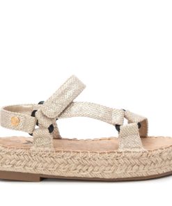 Sandalia de niña, de la marca Xti Kids. Fabricada en tejido metalizado. Cierre mediante tira adherente. Plataforma rodeada en tiras de yute trenzado con suela de goma antideslizante. Unas sandalias perfectas para dar un toque de frescura los looks más veraniegos. Este modelo ha obtenido el certificado vegano por la organización mundial PETA (Organización de los derechos de los animales).