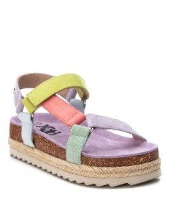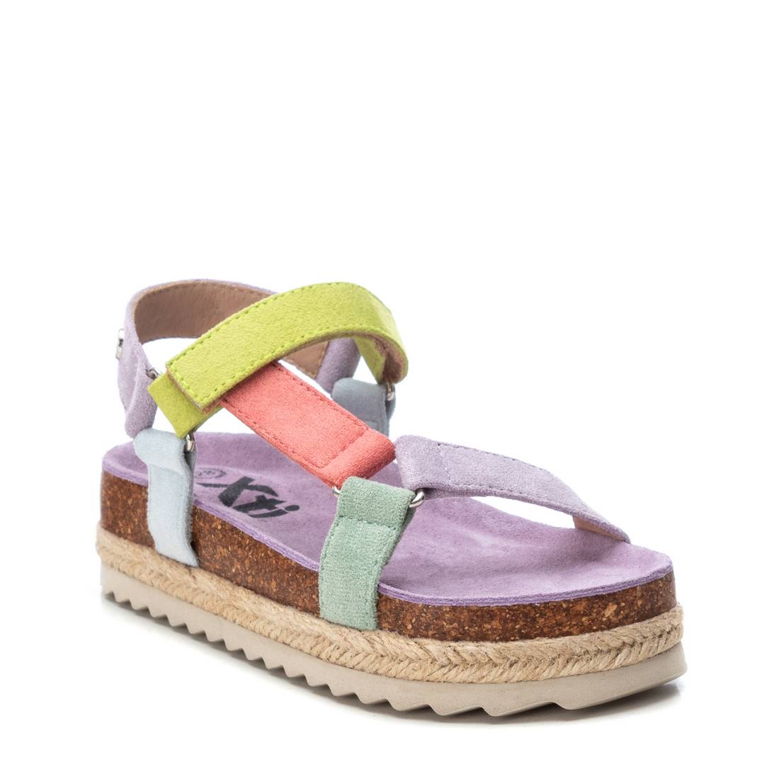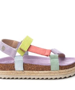 Sandalia de niña, de la marca Xti Kids. Fabricada en suave antelina. Cierre mediante tiras adherentes. Cómoda planta al tono con pequeña plataforma rodeada en yute trenzado. Canalada suela de goma antideslizante. Un modelo perfecto para completar los mejores looks de la temporada.