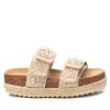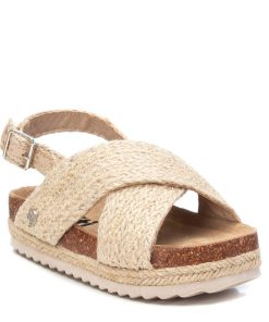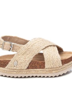 Sandalia de niña, de la marca Xti Kids. Fabricada en rafia de alta calidad. Tira trasera con hebilla metalizada para sujetar el tobillo. Cómoda planta con suela canalada de goma antideslizante.