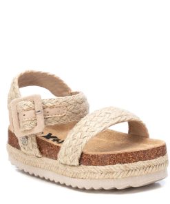 Sandalia de niña, de la marca Xti Kids. Fabricada en rafia de alta calidad. Tira con gran hebilla forrada al tono para sujetar el tobillo. Cómoda planta con plataforma rodeada con tiras de yute trenzado. Canalada suela de goma antideslizante. Este modelo ha obtenido el certificado vegano por la organización mundial PETA (Organización de los derechos de los animales).