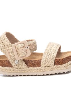 Sandalia de niña, de la marca Xti Kids. Fabricada en rafia de alta calidad. Tira con gran hebilla forrada al tono para sujetar el tobillo. Cómoda planta con plataforma rodeada con tiras de yute trenzado. Canalada suela de goma antideslizante. Este modelo ha obtenido el certificado vegano por la organización mundial PETA (Organización de los derechos de los animales).