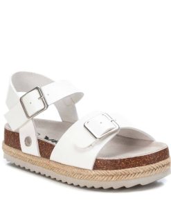 Sandalia de niña, de la marca Xti Kids. Diseño de pala con hebilla y pulsera trasera con cierre de hebilla para sujetar el tobillo. Fabricada en material que imita a la piel. Pequeña plataforma rodeada con tira de yute trenzado. Suela canalada de goma antideslizante.