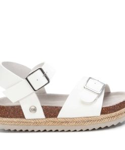 Sandalia de niña, de la marca Xti Kids. Diseño de pala con hebilla y pulsera trasera con cierre de hebilla para sujetar el tobillo. Fabricada en material que imita a la piel. Pequeña plataforma rodeada con tira de yute trenzado. Suela canalada de goma antideslizante.