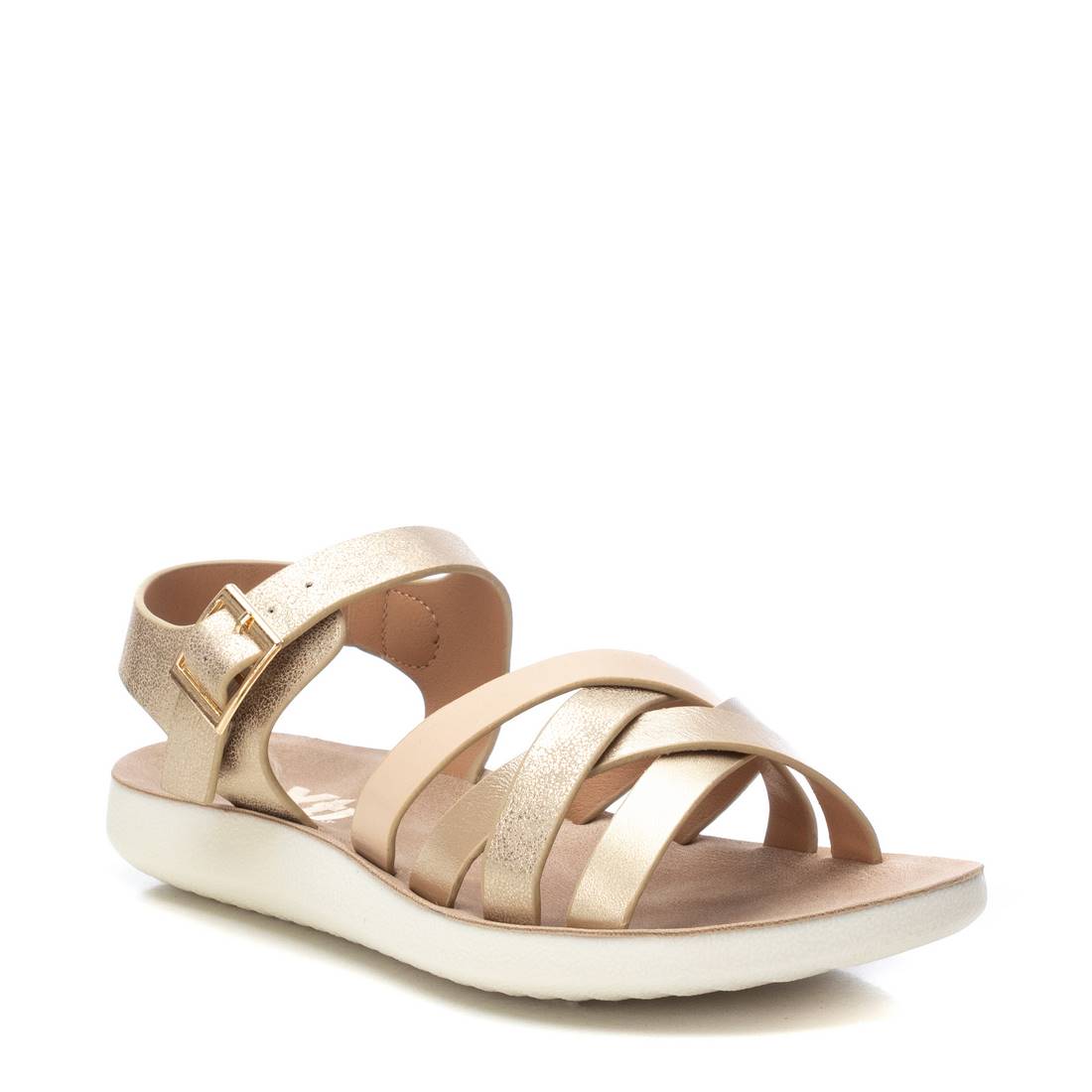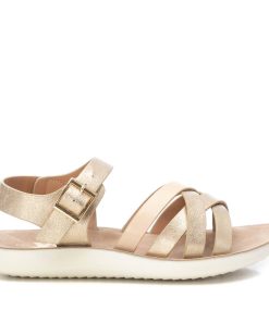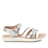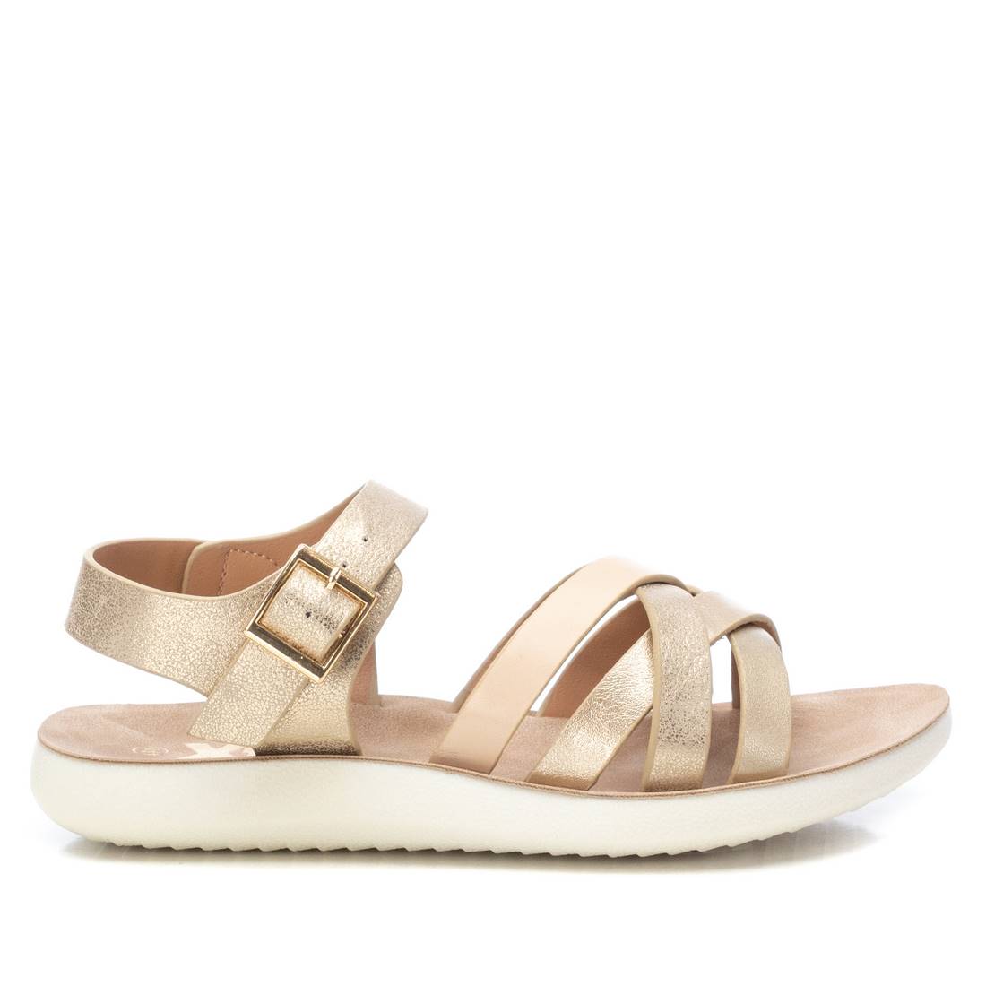 Sandalia de niña, de la marca Xti Kids. Fabricada en cómodo material metalizado que imita a la piel. Cierre mediante hebilla con tira que ajusta el tobillo. Cómoda planta al tono con suela de 2 cm de goma antideslizante. Este modelo ha obtenido el certificado vegano por la organización mundial PETA (Organización de los derechos de los animales).