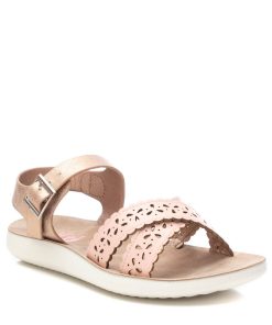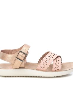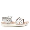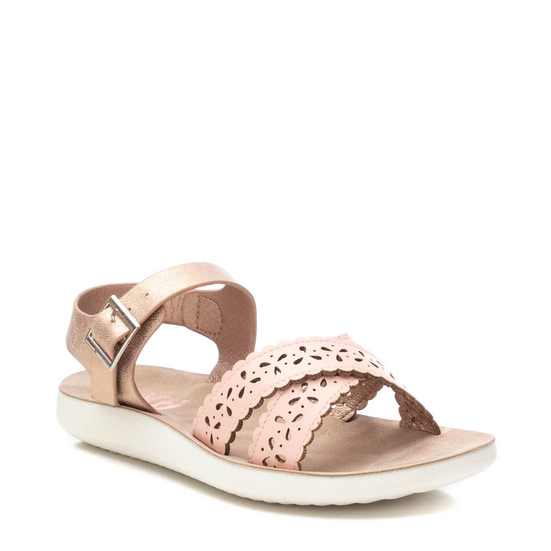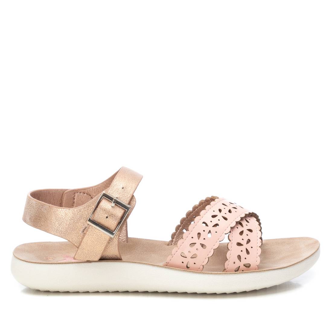 Sandalia de niña, de la marca Xti Kids. Fabricada en material que imita a la piel. Con doble pala cruzada con un bonito troquel. Tira trasera con hebilla que ajusta al tobillo. Cómoda planta con suela de 2 cm de goma antideslizante. Este modelo ha obtenido el certificado vegano por la organización mundial PETA (Organización de los derechos de los animales).