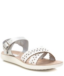 Sandalia de niña, de la marca Xti Kids. Fabricada en material que imita a la piel. Con doble pala cruzada con un bonito troquel. Tira trasera con hebilla que ajusta al tobillo. Cómoda planta con suela de 2 cm de goma antideslizante. Este modelo ha obtenido el certificado vegano por la organización mundial PETA (Organización de los derechos de los animales).