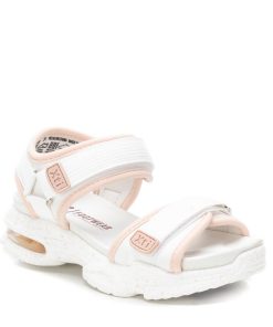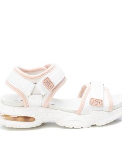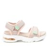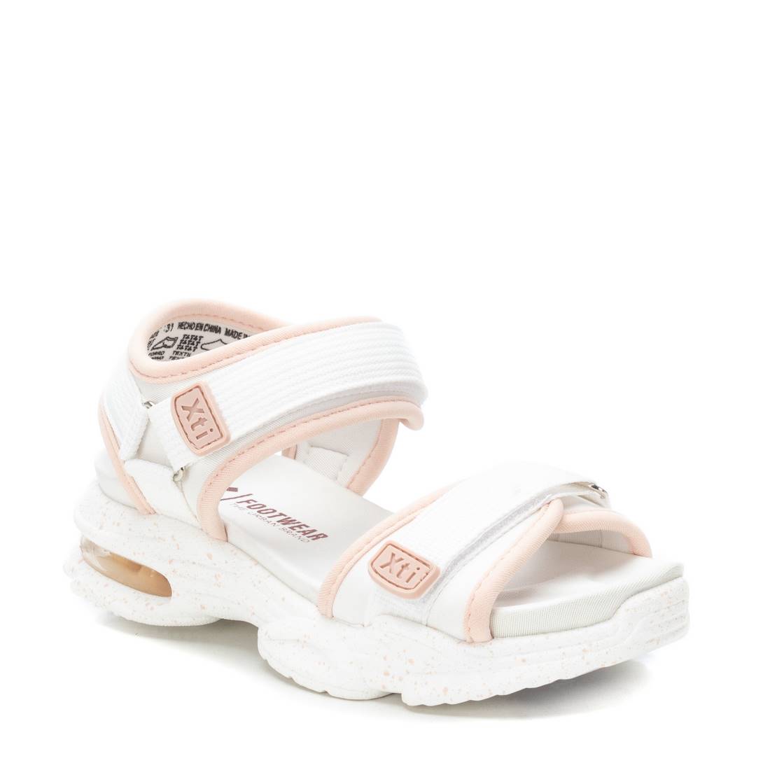 Sandalia de niña, marca Xti kids. Fabricado en material que imita la piel y planta de material textil. Cierre con velcro para ajustar a la medida de cada pie y suela con cámara de aire. Una saldalia de estilo urbano. Este modelo ha obtenido el certificado vegano por la organización mundial PETA (Organización de los derechos de los animales).