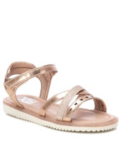Sandalia de niña, de la marca Xti Kids. Fabricada en material metalizado que imita a la piel. Pala compuesta por tres tiras con diferentes acabados. Pulsera trasera con cierre autoadherente para sujetar el tobillo. Este modelo ha obtenido el certificado vegano por la organización mundial PETA (Organización de los derechos de los animales).