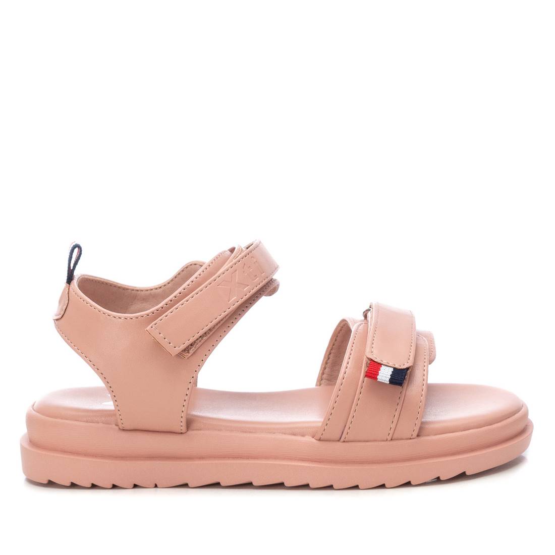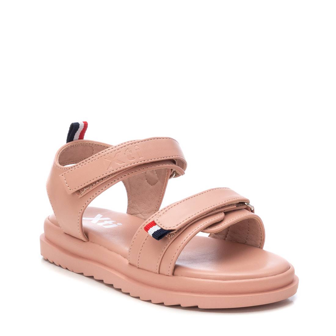 Sandalia de niña, de la marca Xti Kids. Fabricada en material que imita la piel. Con tiras con velcro para perfecto ajuste. Cómoda planta acolchada con suela de goma antideslizante. Una sandalia que encantará a las más pequeñas de la casa. Este modelo ha obtenido el certificado vegano por la organización mundial PETA (Organización de los derechos de los animales).