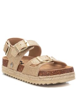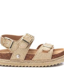 Sandalia de niña, de la marca Xti kids. Fabricada en glitter fino. Tiras con hebillas para una perfecta adaptación. Planta bios con suela canalada de goma antideslizante. Este modelo ha obtenido el certificado vegano por la organización mundial PETA (Organización de los derechos de los animales).