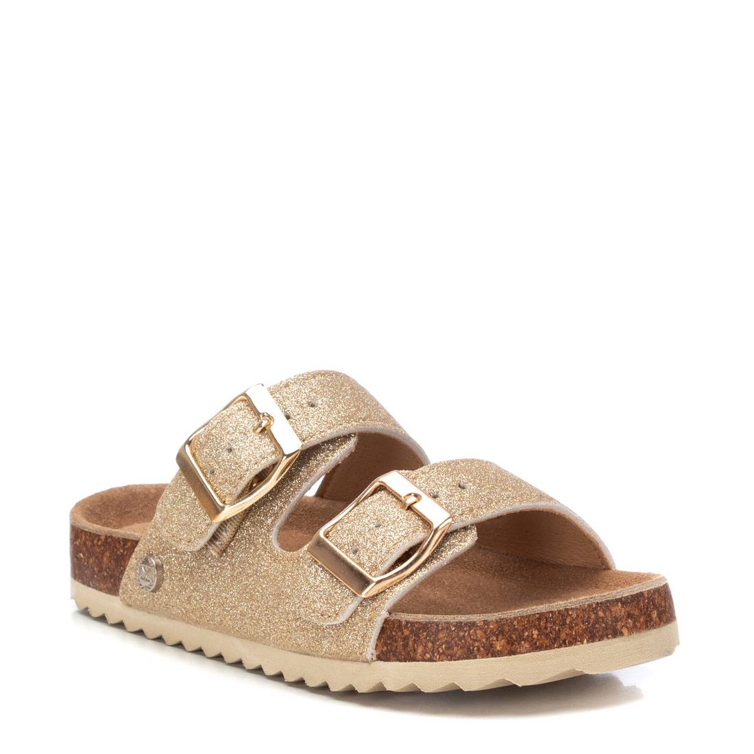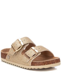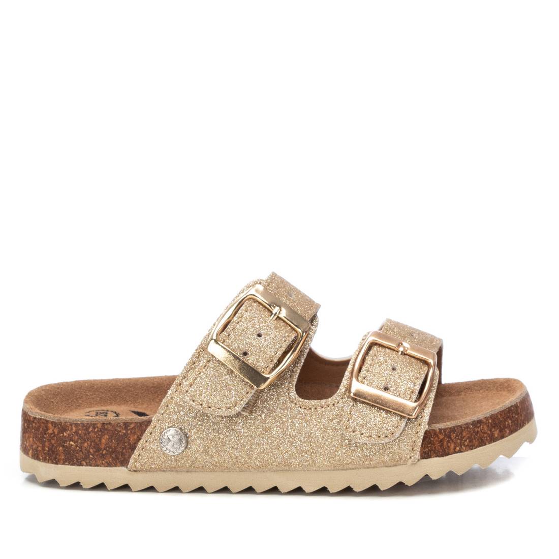 Sandalia de niña, marca Xti kids. Fabricada con plantilla bio de piel y bonito glitter. Hebillas ajustables al tono de la sandalia.Un básico imprescindible de la temporada. Este modelo ha obtenido el certificado vegano por la organización mundial PETA (Organización de los derechos de los animales).