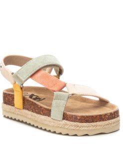 Sandalia multicolor de niña, de la marca Xti Kids. Fabricada en suave antelina. Cierre mediante tira adherente. Plataforma rodeada por tira de yute con suela de goma antideslizante. Una sandalia ideal para completar los looks más veraniegos esta temporada. Este modelo ha obtenido el certificado vegano por la organización mundial PETA (Organización de los derechos de los animales).